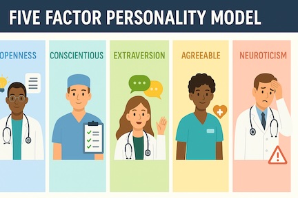 It is impossible to describe the details of these five dimensions in the space of a few paragraphs, but briefly, openness entails a doctor’s degree of willingness to embrace new ideas, technologies, structures, and perspectives. Conscientiousness might reflect a practitioner’s respect of ethical responsibility, manifesting itself, for example, as dependability and integrity. Extraversion, agreeableness, and neuroticism highlight interpersonal and emotional aspects of medical practice. They contribute to what is also referred to as Emotional Intelligence (EI), which is the ability to recognize, understand, and regulate one’s own emotions as well as the awareness of how those emotions might affect or influence others.