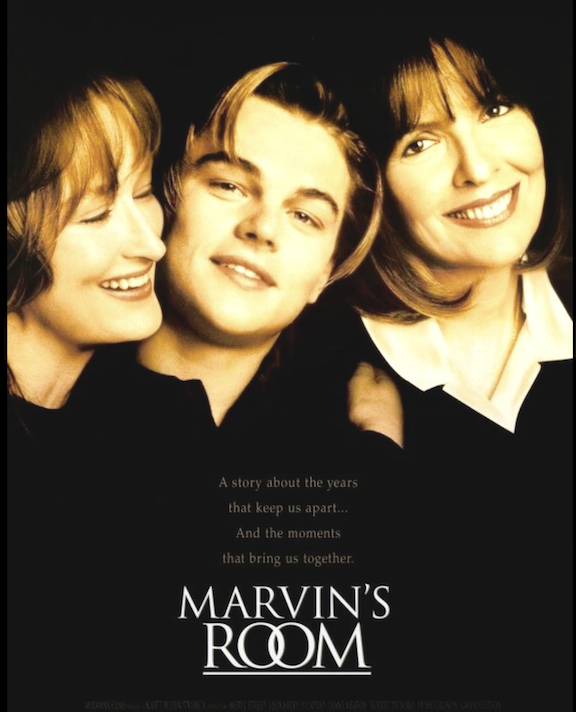In one of her lesser-known films, Marvin’s Room (directed by Jerry Zaks from a screenplay by Scott McPherson), she portrays Bessie, a staunch and self-sacrificing woman who has spent the last twenty years caring for her mute, bedridden, multiple-stroke victim father, Marvin (Hume Cronyn), and her ailing aunt, Ruth (Gwen Verdon). Bessie’s life changes drastically when she learns she has leukemia and requires a bone marrow transplant. The rest of the film is a poignant exploration of family dynamics, responsibility, and the value of selfless caregiving in the context of renewed relationships Bessie establishes with her estranged sister, Lee (Meryl Streep) and Lee’s two dysfunctional children, the emotionally volatile teenager, Hank (Leonardo DiCaprio) and his ten-year-old brother, Charlie (Hal Scardino), all of whom may be eligible donors for a procedure that could save Bessie’s life.